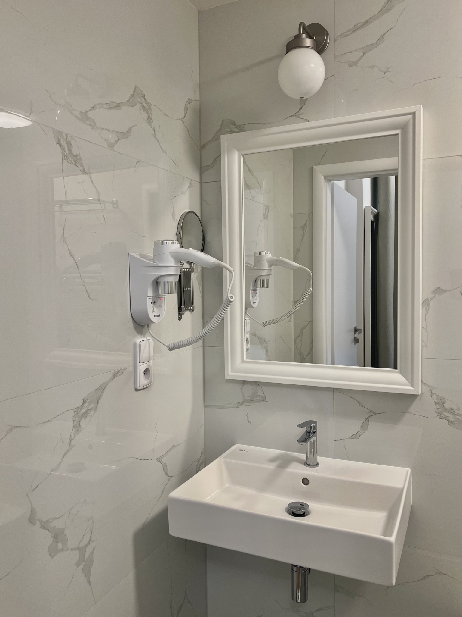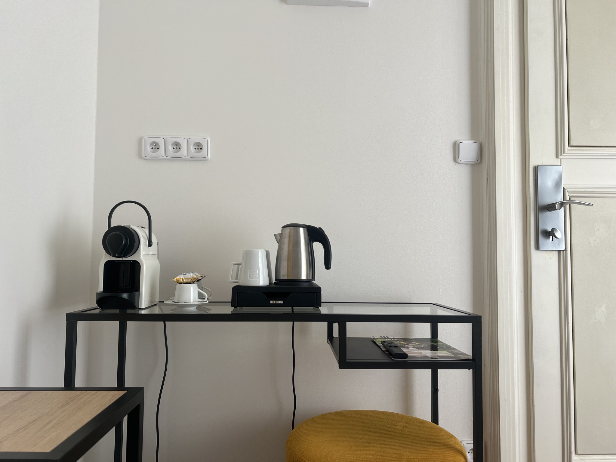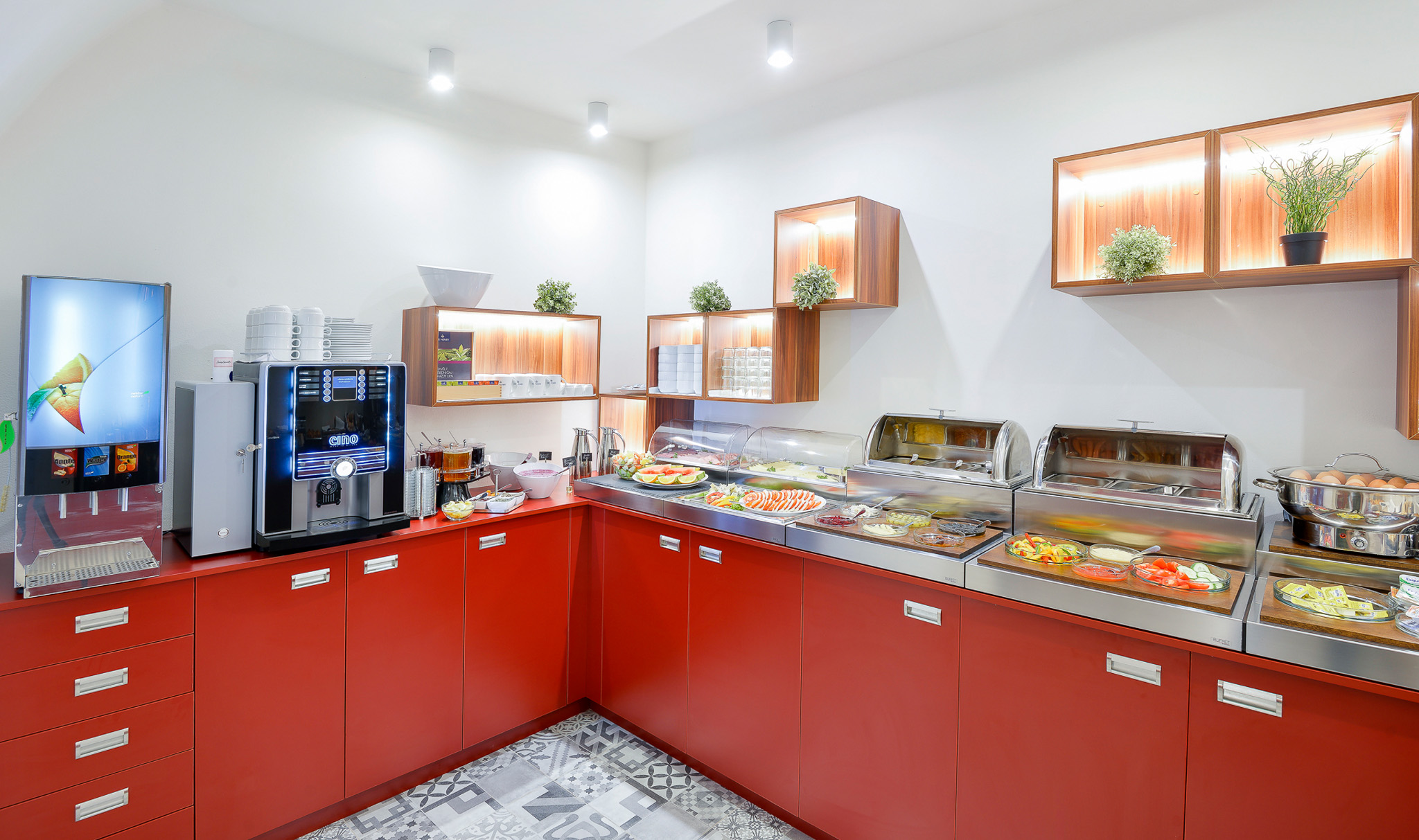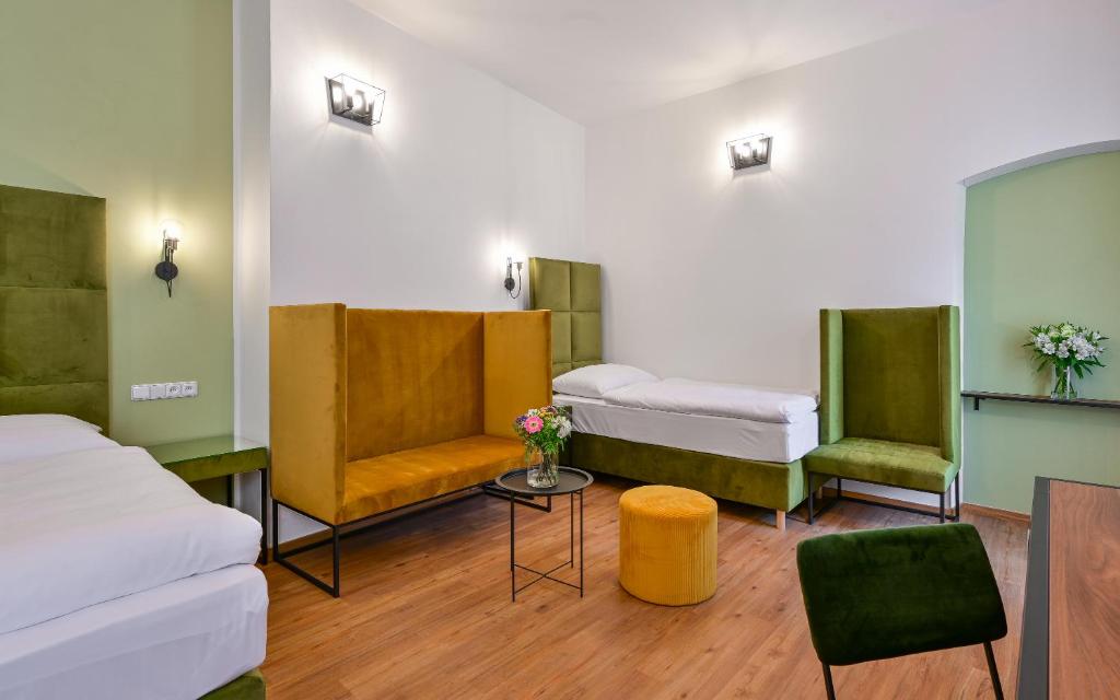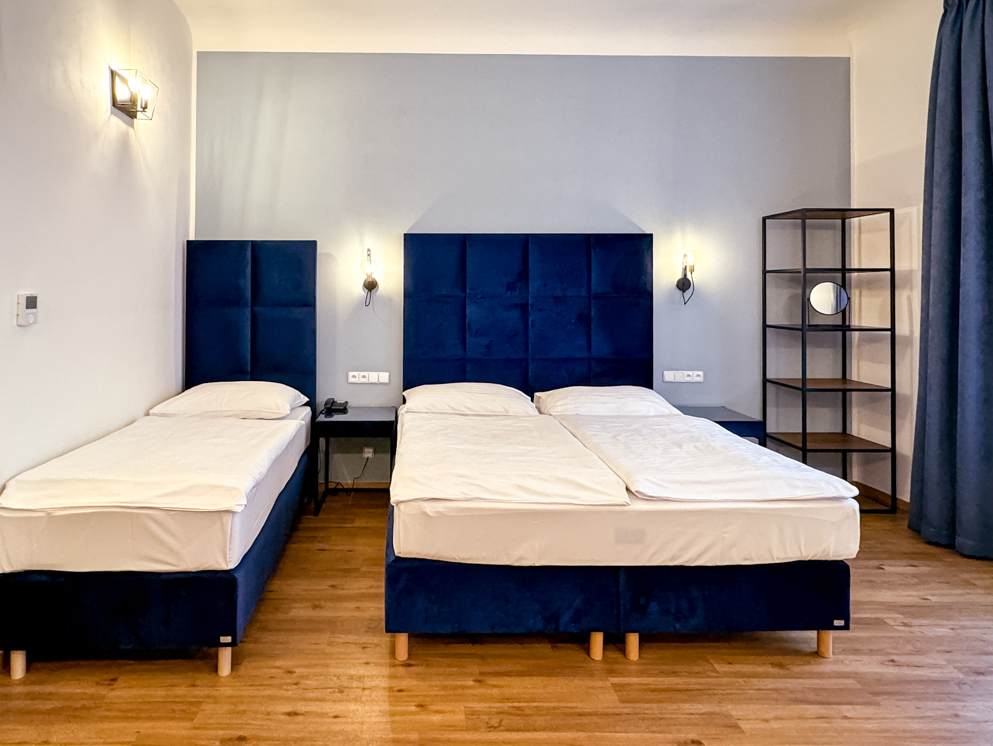 Modern, fully furnished Comfort rooms, Quadruple rooms,Superior suites,Family suites andKing suites. All rooms and suites have a view of the street. The suites are suitable for up to 4 persons. The rooms have a seating area, sofa, air conditioning, minibar and safe, hairdryer, flat-screen TV and WiFi access. Private bathroom with shower or bathtub, depending on the category.