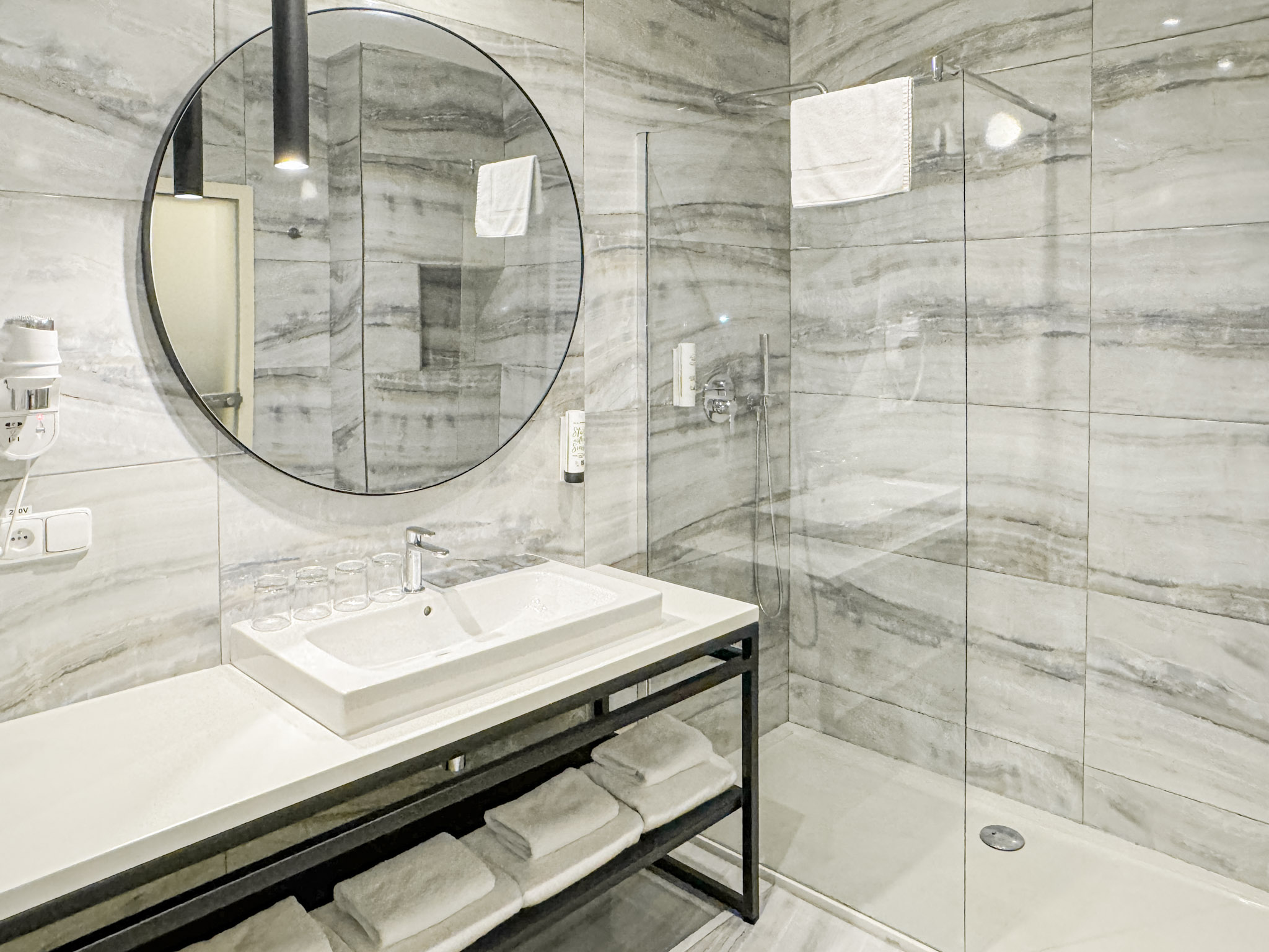 Spacious and comfortable Superior rooms with double bed or twin beds that can accommodate up to four people. Deluxe rooms and rooftop Superior rooms with a double bed. The rooms are equipped with a bathroom with shower and hairdryer, flat-screen TV, air conditioning, minibar, safe and WiFi access.