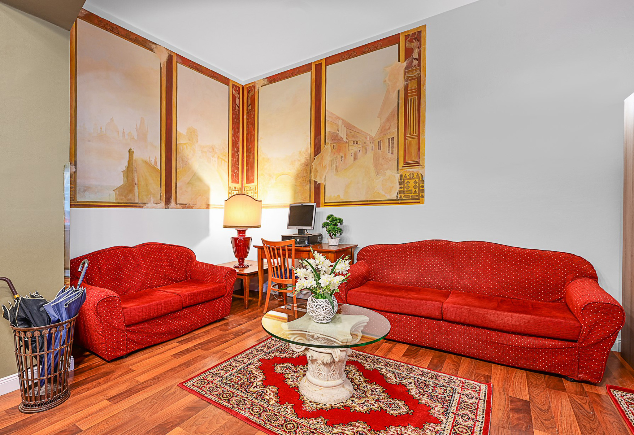 The Hotel Malá Strana has a reception desk with a cosy lounge area with an LCD TV.